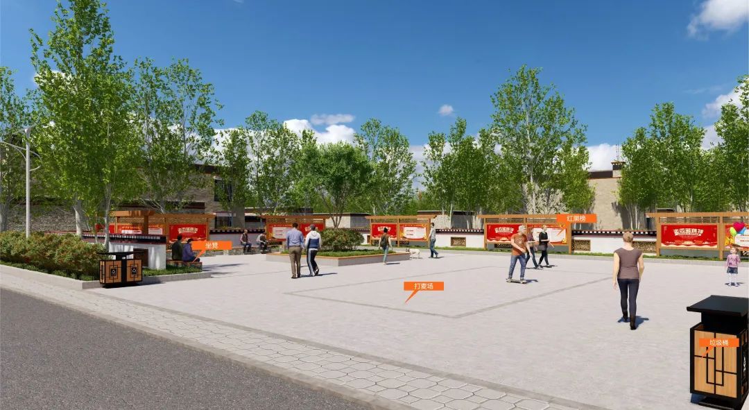 针对现有农牧设施问题,新建打麦场晾晒场,场地内合理布置休息设施、垃圾桶等公共设施,搬迁村内集中牛羊圈至合理范围内,以集约化、规模化合理发展集中牧业,提升牧业水平和成果产出,减小对于居民日常生活环境的影响。