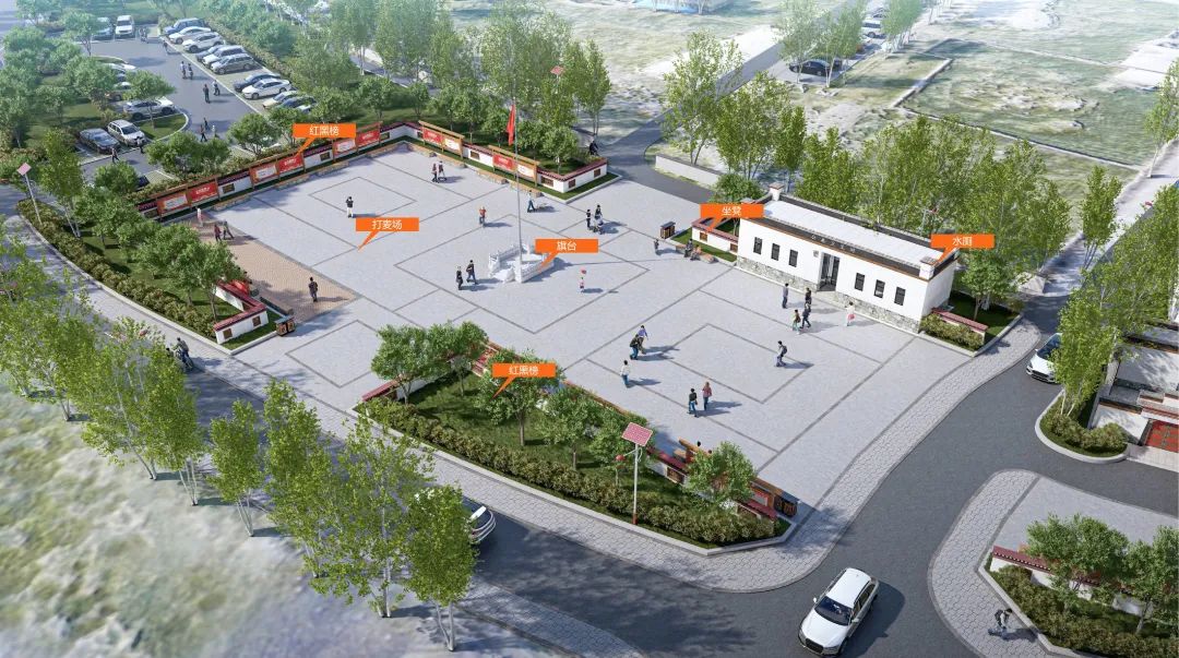 基于热玛瓦村自身的文化底蕴和特点,材料上我们更多的使用本地材料,受造价和结构限制,混凝土材料和手抓纹式样结合使用,既满足效果又节约成本。植物上考虑本地树和披肩草彰显热玛瓦村的特征,不落于常规做村落的套路,打造集功能性、地域性、文化性于一体的乡村振兴示范村,真正展现热玛瓦村特色。